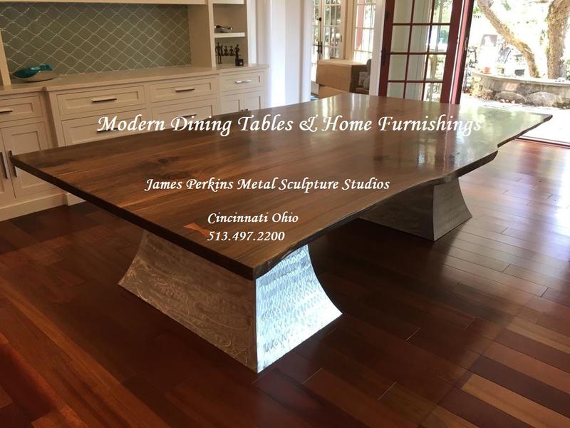 Authentic Walnut & Aluminum Slab Edge Dining Tables & Furnishings
