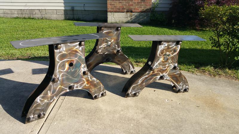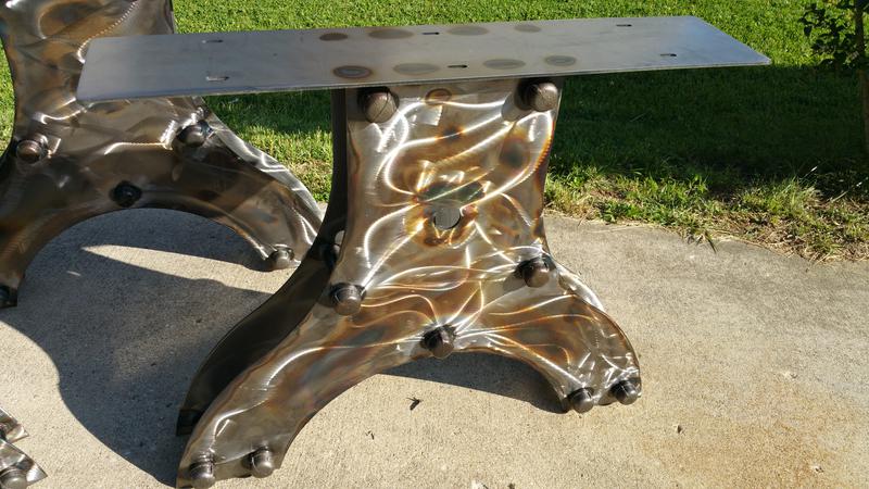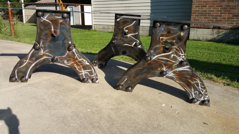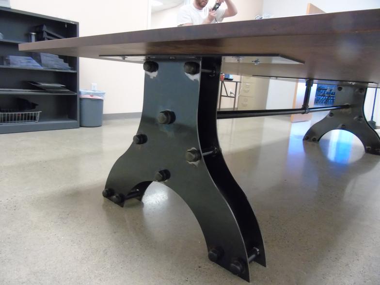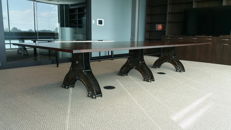 Industrial Conference Table Legs with Beautiful Markings and Hues produced by Fabrication by James Perkins Metal Sculpture Studios 513.497.2200